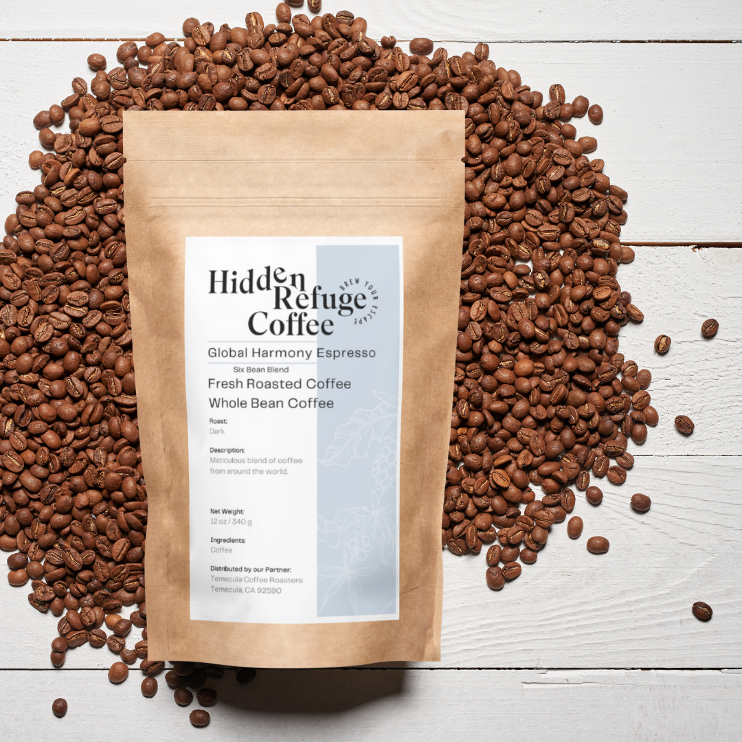 Global Harmony Espresso is our signature dark roast—a bold, complex blend made from ethically sourced, specialty-grade beans from top coffee regions across the globe. Each origin adds depth and character, creating a robust profile designed for the true espresso lover.
